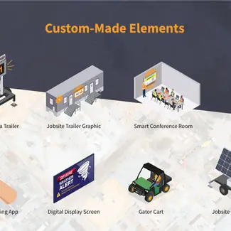 In a brainstorming session with the Vice President and Sales Director of ConstructEdge, we reworked how we were going to show our solutions, even the intangible ones, to the market. It became clear to us that in order to support the story of how our services enable real-time data and live communication on the jobsite, we needed to show our capabilities (story) in the style that customers knew and understood already. That is how the isometric-style graphics began.